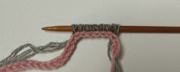 – 9 лицевых, две вместе изнаночной – разворачиваем работу;
