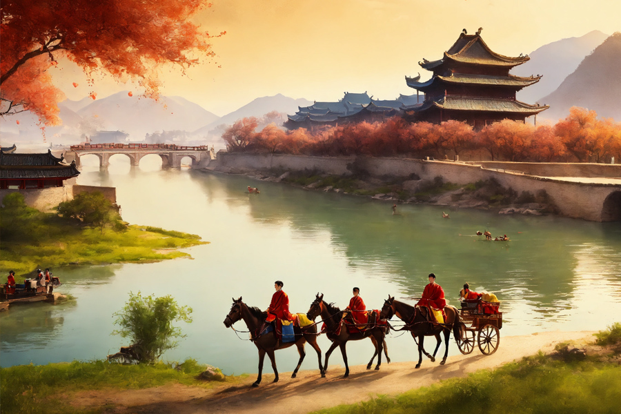 В это время китайцы освоили путешествия в дальние страны. Некий путешественник Чжан Цянь проник на Запад и, вернувшись, описал страны Средней Азии (Согдиана, Бактрия, Парфия и др.). По пути его следования сложился торговый путь через Джунгарию и Восточный Туркестан в страны Средней Азии и Ближнего Востока —«Великий шёлковый путь». Шёл культурный обмен, и на территорию Китая проник буддизм из Индии.