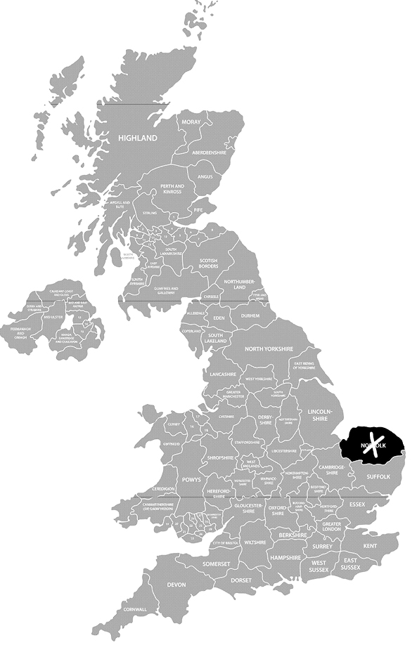 В графстве Норфолк любитель приборного поиска ходил по полю с металлоискателем. Выкопав яму там, откуда получил очередной сигнал, увидел, что в комке земли блеснуло что-то желтое. Очистил находку от грунта и понял, что этот небольшой предмет в форме пирамидки выполнен из золота со вставками красного камня. Кладоискатель сообщил о находке местному офицеру-расследователю (коронеру, англ. coroner), как и было установлено законом.
