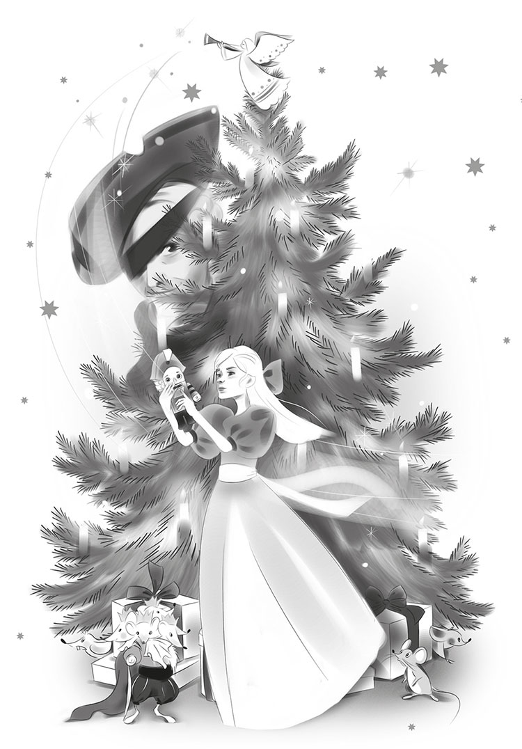 Но как же удивилась и испугалась Мари, когда увидела, что при имени Дроссельмейера Щелкунчик вдруг скривил лицо, и в глазах его мелькнули колючие зеленые огоньки. Не успела Мари хорошенько прийти в себя, как увидела, что лицо Щелкунчика уже опять приняло свое доброе, ласковое выражение.