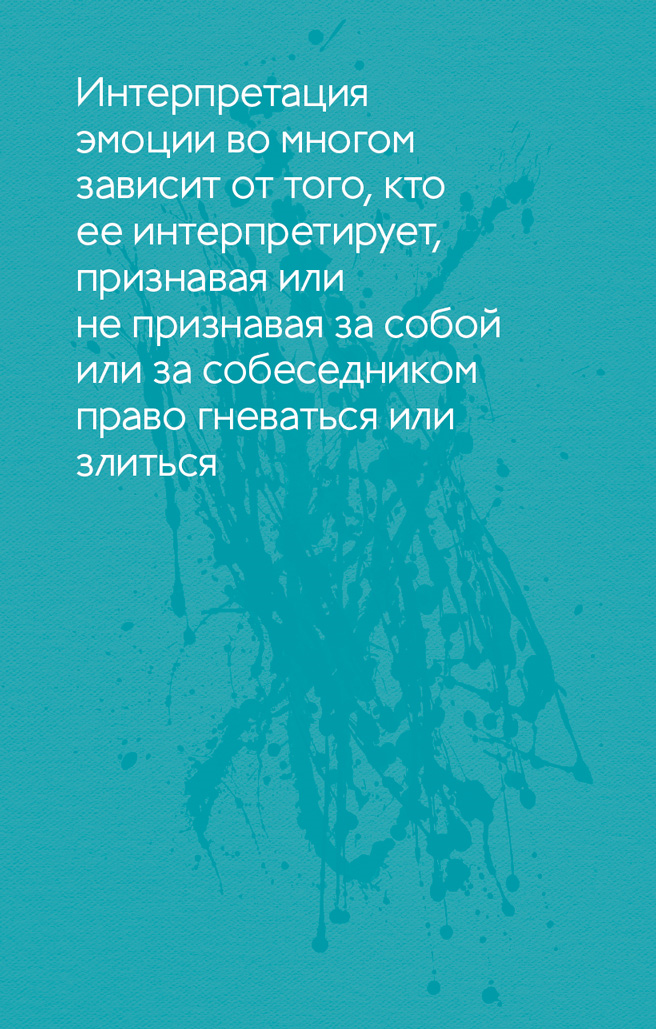 Понимаете, к чему я веду? Интерпретация эмоции во многом зависит от того, кто ее интерпретирует, признавая или не признавая за собой или за собеседником право гневаться или злиться.