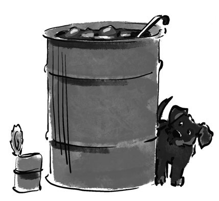 Вдруг безошибочный нюх подсказал Свистуну, что неподалеку жарится рыба. Как пойнтер на куропатку, устремился он вниз по насыпи, прямо к костру легковерного и почтенного рыбака, которого он пленил своими рассказами и потому отобедал по-царски, а затем по-философски свел на нет три худших дневных часа, вздремнув под деревом.