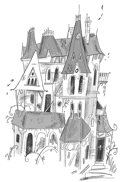 Старый особняк Злобстов с его узкими арками и многочисленными зловещими башенками, не принятыми в приличном обществе, смотрелся здесь до крайности неуместно. Островерхие крыши башенок вечно тонули в чёрной туче, которая никогда их не покидала. Плети плюща и колючей ежевики взбирались по щербатым каменным стенам, обвивая полуобрушенные балконы и облезлые веранды. Солнечные лучи никогда не заглядывали в этот мрачный дом, за тусклыми окнами которого колыхались лишь неясные тени да иногда проступало прижатое к стеклу бледное лицо.