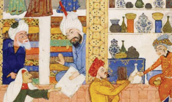 К середине 8 века Мусульманская империя простиралась от Испании до границ Китая. Город Басра, основанный мусульманами на побережье Персидского Залива в 635 году, стал важнейшим торговым центром пряностей. Арабские врачеватели смешивали пряности с персидским сахаром и приготовляли из них лечебные сиропы и эликсиры, прототипы будущих Европейских бальзамов и микстур. В лечебных целях восточные целители широко использовали имбирь, черный перец, мускатный орех, гвоздику, корицу и кардамон.