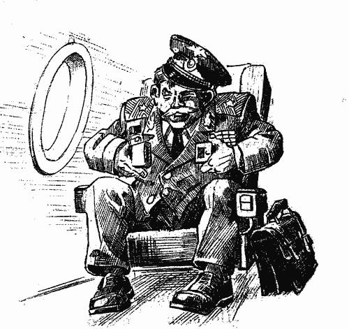 Вот какая опасность нависла над нашим героем. А генерал Бочкин глянул в иллюминатор и с удивлением обнаружил, что самолет все еще не в воздухе. Его усы сразу гневно подскочили вверх.