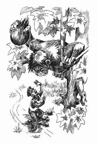 Последнего Иван Иванович вынести не смог. Гордость его не выдержала. Схватил он с земли первый попавшийся орех и кинул его в обезьяну, не попал, схватил второй орех и тоже кинул. Чуть даже не попал.