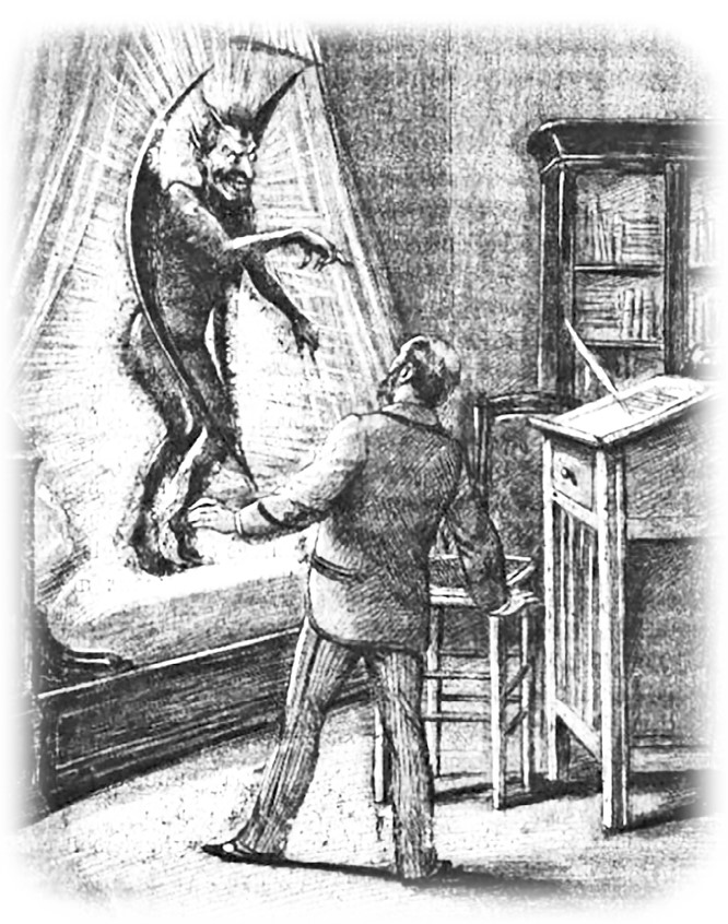 Я посмотрел на него, даже не думая о его синкопе; я был буквально ошеломлен… Карбучча, скептик, атеист Карбучча, сказал, что он проклят, это было невероятно, в это невозможно было поверить… Как?! этот человек, который едва ли давно не верил ни в Бога, ни в дьявола, с которым у меня были по религиозным вопросам разговоры, в которых он всегда подтрунивал надо мной и мягко издевался за то, что он называл моим суеверием, этот человек сказал, что он проклят?.. Решительно, или он внезапно сошел с ума, – мы видели эти примеры, – или тогда с ним действительно произошли необычные вещи. Дело стало интересным для врача, и теперь я пообещал себе спровоцировать его уверенность и узнать все, думая, что имею дело с прекрасным случаем внушения и прекрасным наблюдением демонической галлюцинации, которая будет опубликована в медицинских журналах. Но мне не пришлось его допрашивать. Почти сразу же он вернулся к рассказу, успокоившись этим последним кризисом, его нервы расслабились, он стал абсолютно спокоен и продолжил:
