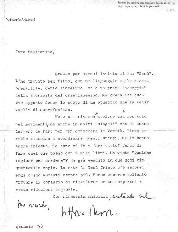 Opinión de Vittorio Messori sobre la primera edición de 100 copias, de 1997