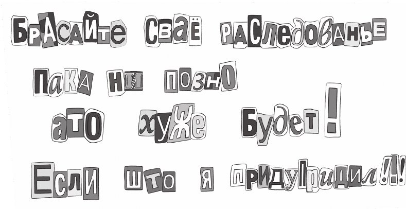 На лист были наклеены буквы разного размера, небрежно вырезанные из журналов и газет. Всё это безобразие складывалось в угрозу, которую прочитала Соня: