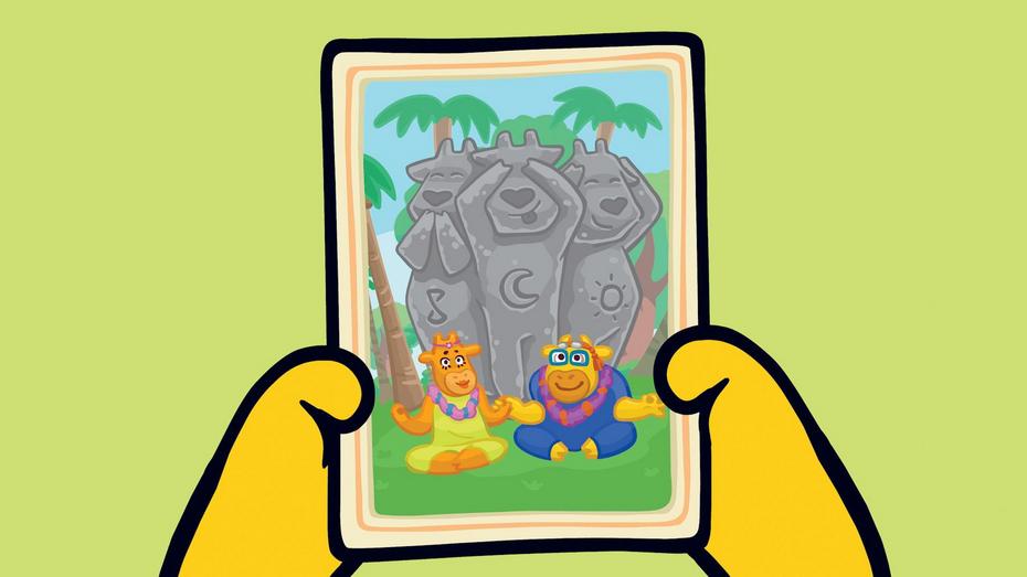 На этом проделки ветра не закончились. Уже через секунду он переключился на Папу Быка и сдул у него из рук конверт. Ветер понёс письмо через всю комнату и уронил на диван рядом со скучающей Зо. Поначалу конверт не вызвал у коровки любопытства. Зо решила просто вернуть его папе, но тут на пол выпала фотография.