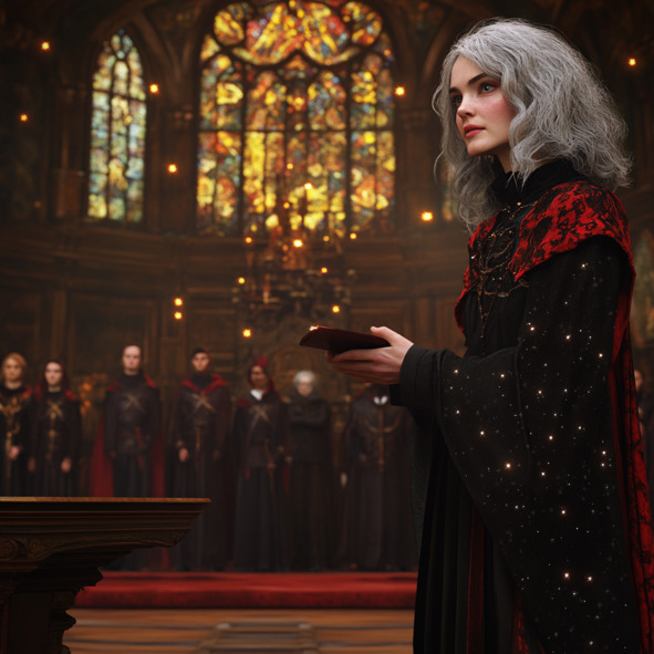Здесь, под куполом, украшенным звездами и светящимися рунами, собрались все новички, которым предстояло пройти вступительный ритуал. Элеонора с волнением смотрела на сцену, где стояла старейший маг Академии королева