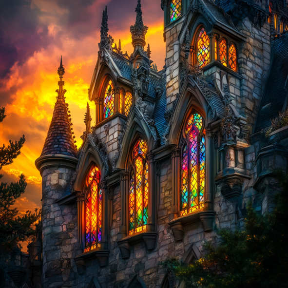 Высокие стены старинного замка, украшенные витражами, переливающимися всеми цветами радуги, поистине завораживали.