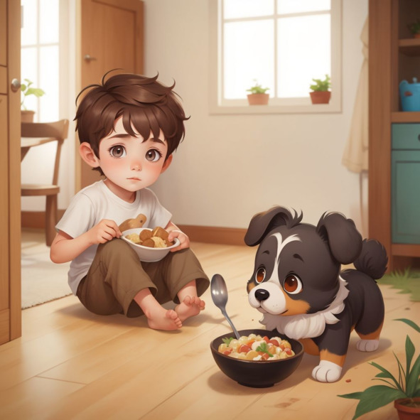 Liam’s parents taught him how to care for Benjamin. He learned how to feed him and give him water. Liam also learned how to brush Benjamin’s fur. Every morning, Liam would fill Benjamin’s bowl with food. Benjamin would wag his tail and eat happily. Liam felt proud to take care of his new friend. “I love you, Benjamin,” he would say.