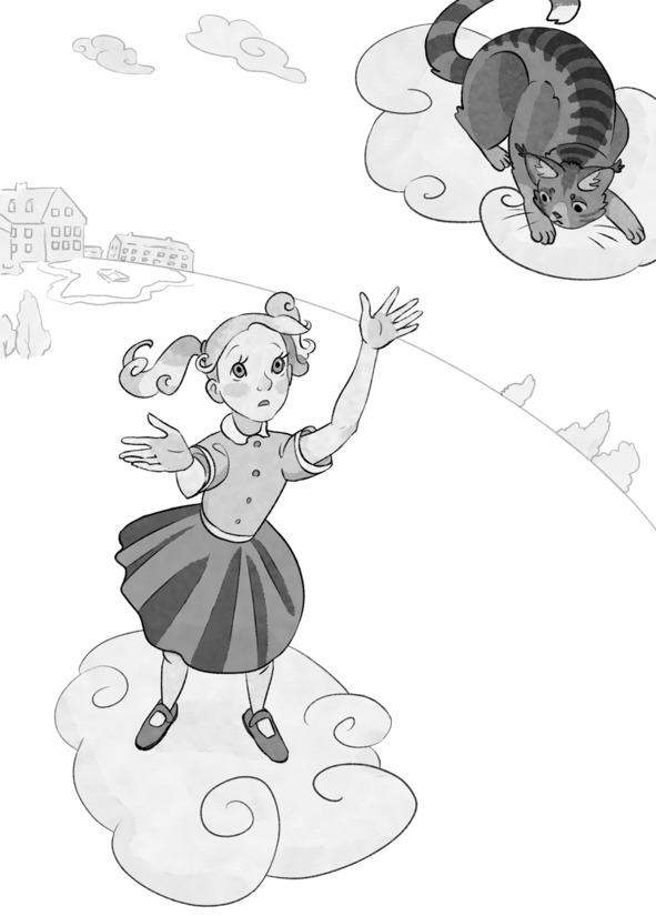 – Алёша-а, вернись! – крикнула Маргаритка, как вдруг подлетело ещё одно облачко. Девочка сделала шаг и очутилась на мягком, словно пух, облаке. У Маргаритки захватило дух, так быстро облако стало подниматься вверх, вслед за облаком с Алёшей. Девочка посмотрела вниз и увидела свой дом, песочницу и дорогу к школе. Всё стало таким маленьким-премаленьким, как миниатюрные фигурки из папиной коллекции. Вот она увидела свою школу, куда каждое утро её провожал Алёша. Маргаритка вспомнила про кота, подняла глаза в небо и стала искать его.