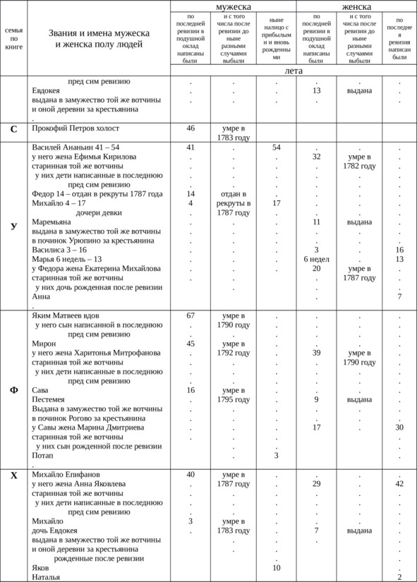 А именно написанные по последней 4 ревизии за Его Сиятельством князь Сергием Ивановичем Одоевским дошедшие господину нашему в 1784 году по продажея крестьяне села Николаевского Белышеве тож. В деревне Куличиха Белышевской волости Варнавинской округи Костромского наместничества крестьяне: