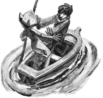 Ойкью фыркнула: как он, наверное, горд собой! Но мальчик был прав, как ни посмотри. Луна, которая висела уже высоко над рекой, опять казалась жутковато-жёлтой, а далёкий звук, похожий на звон ржавой цепи, всё ещё преследовал их, словно эхо наступающего рока. Ойкью погребла быстрее.