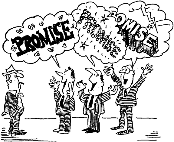 TERM: ‘The people will not fall prey to glittering bribes.’ TRANSLATION: ‘We’ve not got much of a policy this time.’