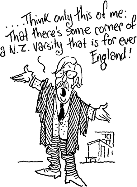 The students are another ground for staff dissatisfaction. They take the books out of the library, make the place look untidy, drive suspiciously close to the staff when homeward bound. The staff want to teach only the best but have to drop their artificial pearls in front of swine. The staff want students to be passionately interested in their subject; the students want a meal ticket and will put together any kit-set structure of Wisdom I, Taste and Discrimination II and Sense and Sensibility III which puts them as quickly as possible on to the labour market. The staff want excitement and discussion from students whose schooling has prepared them only to take down sacred texts. Say ‘Good morning’ to a class of British students and they’ll reply, ‘Good morning, Comrade’. Say it in New Zealand and they’ll take it down. The lecturer’s approach has to be to say what he’s going to say, say it, then recapitulate—a lesson brought home to me in my first lecture. With a naive enthusiasm for Socratic techniques, I outlined the case of those who thought the gentry rose from 1540-1640, then the counter case against the self-raising gentry, and invited them to choose. I was surrounded by an anxious group of students asking, ‘But what do you think?’ Here was the key to success and the line that would come back to me, with some deterioration in the grammar and style, in exam papers.