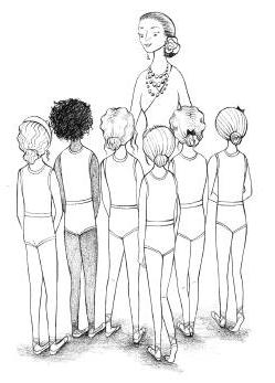 As she spoke the door opened and Madame Za-Za came in. As usual, the ballet teacher was wearing a long ballet skirt, bangles and necklaces. Her greying hair was tied back in a bun. She caught Asha’s words. “You will not be sick, Asha,” she said in her slight Russian accent. She smiled. “You will go into the exam room and perform your very best. I am sure all of you are going to make me proud. Now, when you’re ready, please come to studio two and start to warm up.”