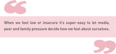 When we feel low or insecure it’s super-easy to let media, peer and family pressure decide how we feel about ourselves. The thing is, when your idea of beauty is being shaped by others, it can sometimes make you feel like you’re on a constant quest to become perfect-o-girl. This is pretty sucky because ideas aren’t real, what with them just being ideas, and all.