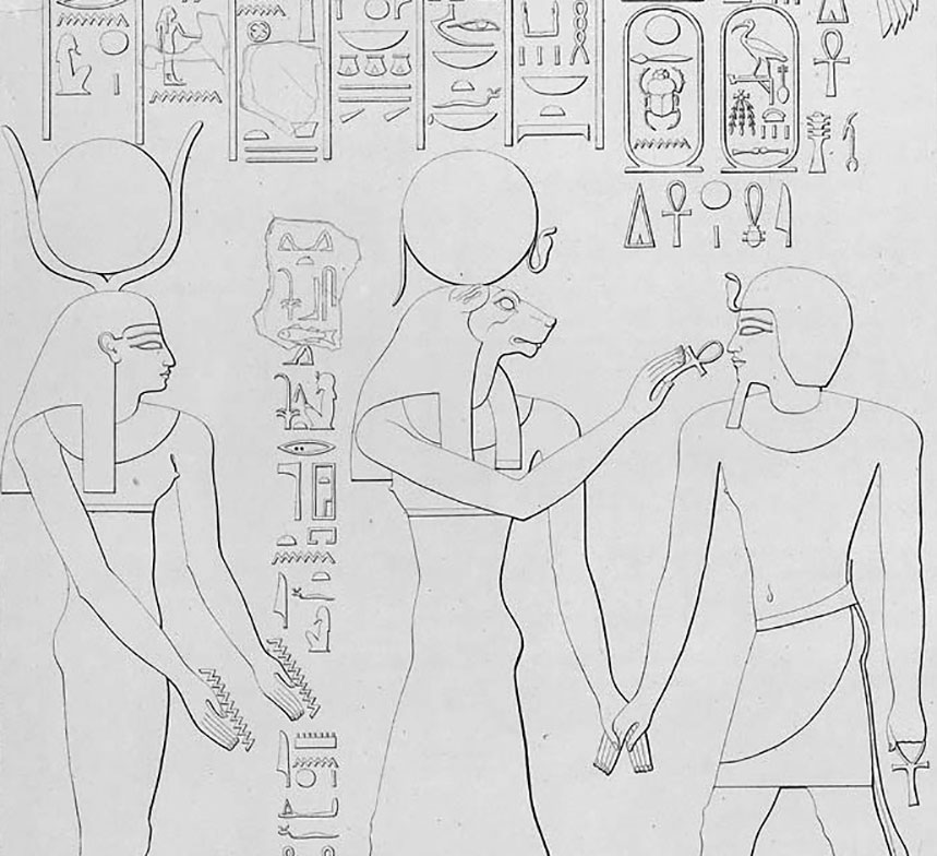 Тутмос II, Сехмет и Хатхор. Рельефные копии из Карнака, Египет