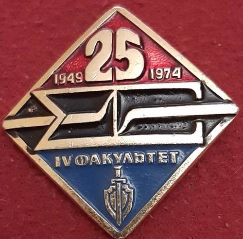 Если, взглянув на этот значок, читатель подумал, что в 1974 году исполнилось 25 лет IV факультету, то это не совсем так.