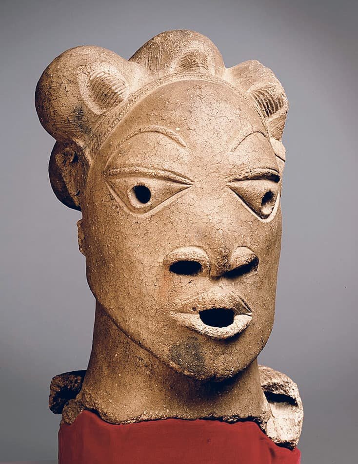 Эти фигуры и головы – относимые к культуре Нок, получившей свое название по небольшому селению, где были сделаны находки, – часто были выполнены в натуральную величину и гармонично сочетали жизнеподобие с декоративностью. Глубоко высверленные зрачки, тщательно проработанные прически, состоящие из пучков и косичек, а также «артикулирующие» рты, создающие впечатление, будто изображенные говорят или поют, – характеризуют стиль культуры Нок. Возможно, они должны были воспевать умершего в его загробной жизни: такой обычай был гораздо менее кровожаден, чем практики шумеров, и предлагал более радостную перспективу, чем быть вечно замурованным в безмолвии каменной пирамиды.