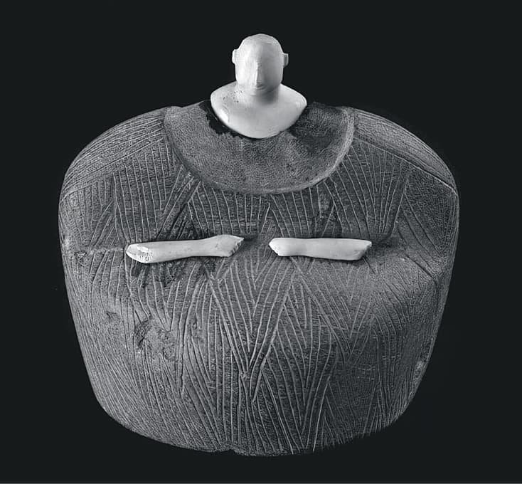 К северу от Инда, на землях Центральной Азии между Каспийским морем и горами Тянь-Шаня, во II тысячелетии до нашей эры стали возникать города поменьше: они напоминали города Междуречья, в них имелись дворцы и неприступные укрепления. Государство Маргиана было частью большой области, так называемой Бактрийско-Маргианской или Оксианской цивилизации (от древнего наименования реки Амударья – Окс). В окруженном стенами городе Гонур-Депе, столице Маргианы (сегодня это территория Туркменистана), идее власти уделялось больше внимания, чем в культуре долины Инда, – об этом свидетельствуют оригинальные скульптуры, найденные в погребениях. Они изображают сидящую женщину в объемном наряде, сплетенном из прядей овечьей шерсти и напоминающем накидки-каунакесы, которые носили в Персии и Месопотамии. Каунакес безусловно являлся признаком высокого статуса, так же как маленькие руки и голова, выглядывающие из массива одежды. Возможно, это изображения маргианских цариц, которые дают аудиенцию, хорошенько укутав свое царское величество.