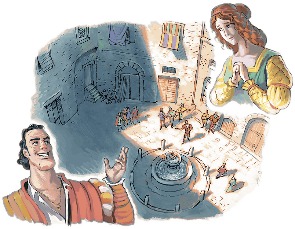 Джакопо не очень-то хотелось выдавать свою дочь за такого буяна, как Раньеро, и он изо всех сил противился этому браку. Но ему пришлось уступить: любимая дочь заявила, что никогда не выйдет замуж ни за кого другого.