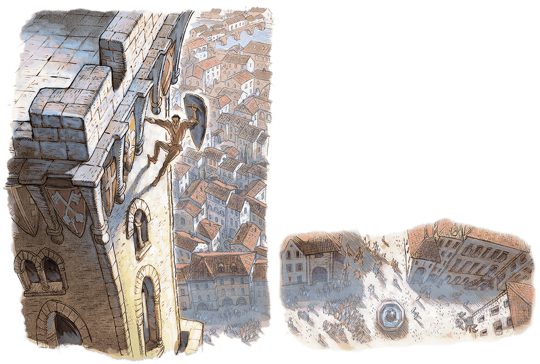 Но вот однажды Раньеро снял щит, пристроил его на спине и спустился вниз.