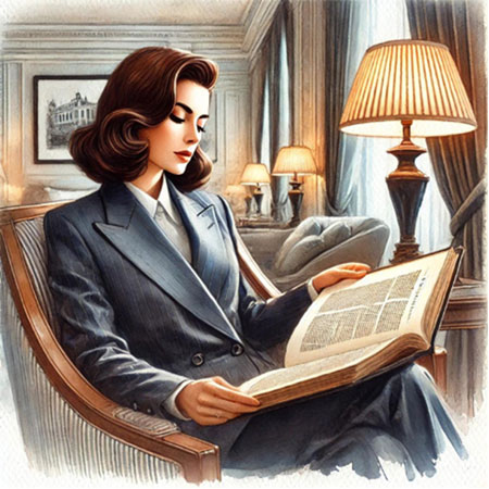 За полгода работы помощницей Жана ей удалось создать образ хоть и легкомысленной, но неглупой эстетки, разбирающейся в литературе, музыке и живописи. Она умела не только поддерживать деловую или светскую беседу, но и с энтузиазмом откликаться на авантюрные приключения.