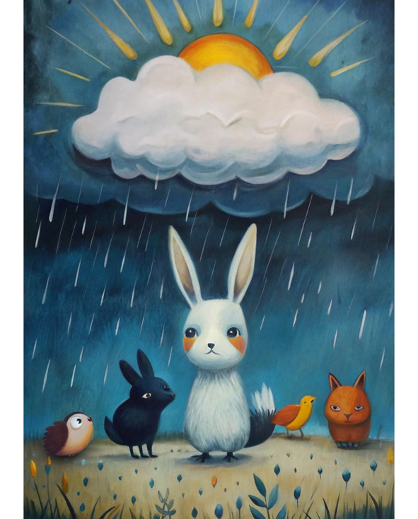 И тогда солнышко начало обжигать Тучку, и от боли она начала плакать. Начался настоящий дождь…