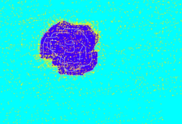 2. Дышите ровно и свободно, поддерживайте «дыхание своего биополя». На рис. 13 изображён брюшной мозг Вселенной, который окутан серебристой энергией, полученной из Кольца.