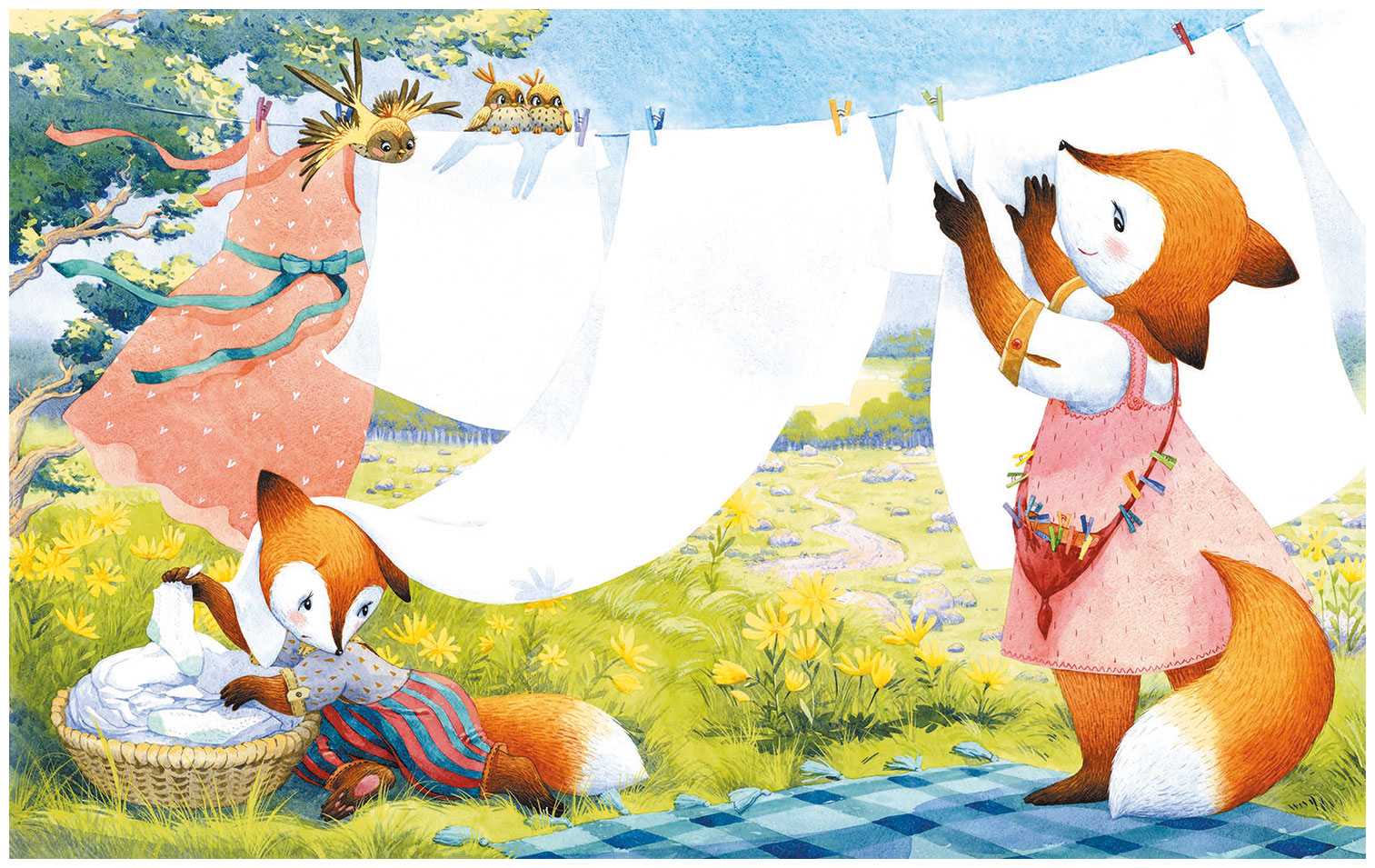 – Малыш, а давай повесим постиранные полотенца и простыни? И тебе занятие – и мне помощь. – Мама погладила грустного лисёнка по голове. – Пойдём, пойдём.