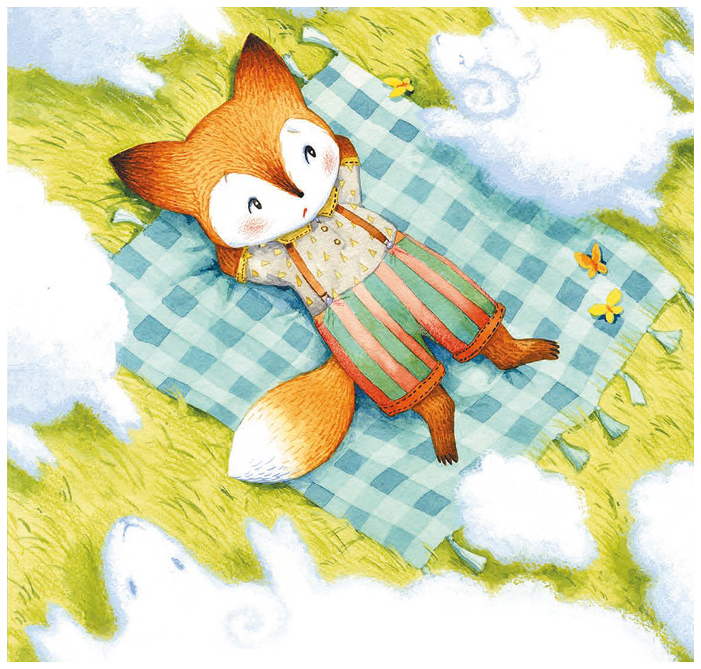 И мама пошла домой, а лисёнок остался на опушке. Птицы, как назло, не прилетали – некого было отгонять от белья. Облака-барашки, медленно плывшие по небу, были скучные, как и бабочки, которые спокойно грели крылышки на солнце, – Фырк даже не захотел их ловить.