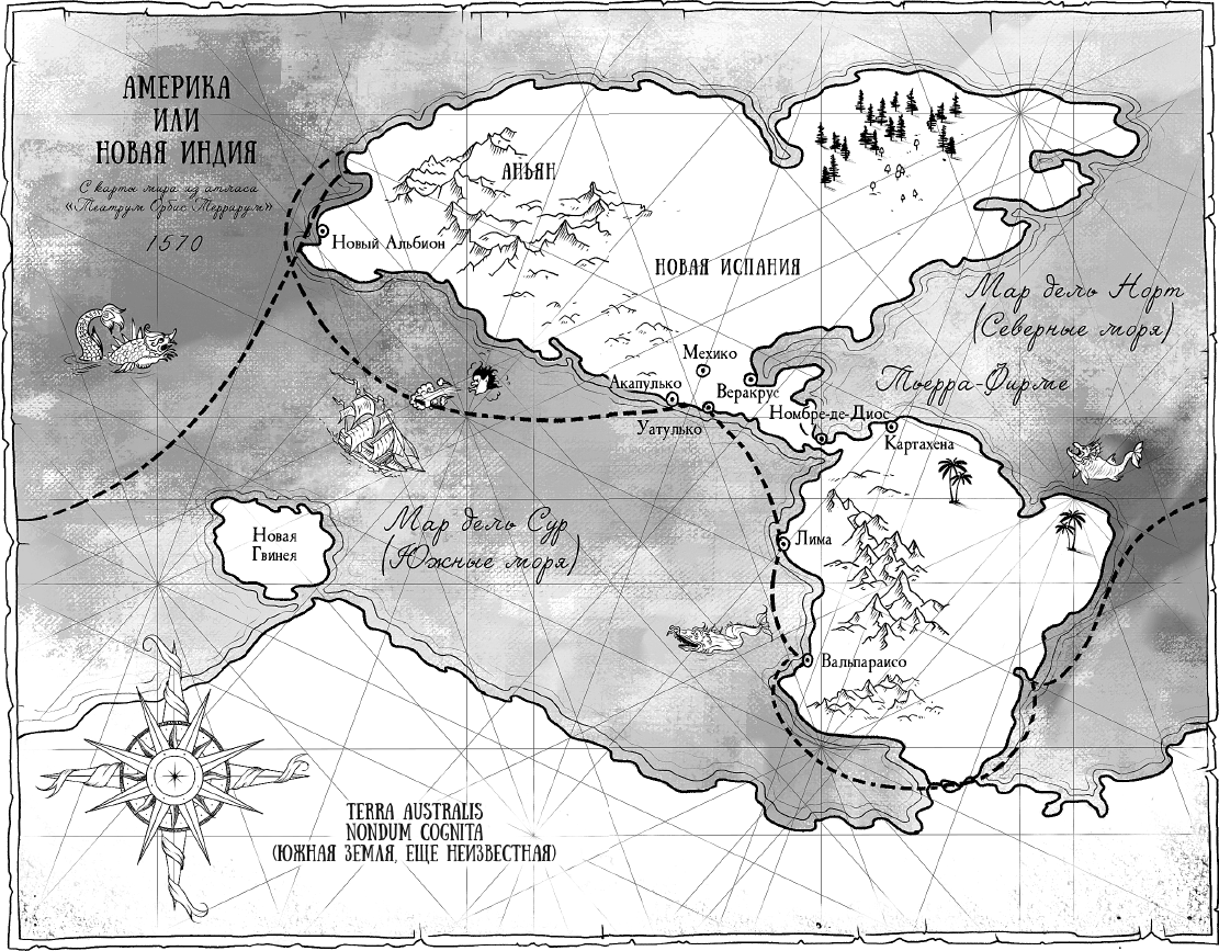 Ага, теперь и я понимаю. Потому что он, хоть и ведет себя как ленивая древесная обезьяна, никогда прежде не бывавшая на борту корабля, провел в Новом Свете много лет. Как и я, он прибыл сюда одиннадцать лет назад, хотя, конечно, другим способом. Он явился с испанским флотом 1568 года, который сражался с англичанами при Сан-Хуан-де-Улуа, а позже был в Панаме во времена Корсара, а потому испытывает естественный ужас перед лютеранами.