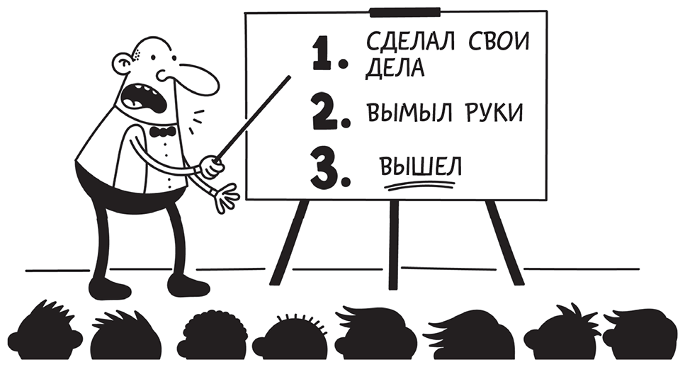 Судя по всему, учителя уже давно жаловались директору, что дети слишком долго торчат в туалетах. Поэтому новое правило заключалось в том, что пребывание в уборных не должно длиться дольше одной минуты. Учителя даже устроили целое собрание, на котором популярно разъяснили ученикам, как им уложиться в шестьдесят секунд.
