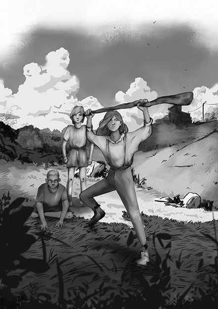 Алинка с Тимошкой возвращались домой от соседей, она была у своей подруги Оксаны. Услышав шум в заброшенном доме, они решили выяснить, что там такое, и, разумеется, увидев, что её брата и Олега одолевают местные, яростно кинулась в драку, схватив здоровую дубинку, попавшуюся под руку. Кучерявый Тимошка, тряся кулаками и топая ножкой, остался стоять на бугорке, как бы руководя битвой. После вступления Алинки драка продолжалась недолго; охая и кряхтя, пацаны отползали в сторону, так как всем уже изрядно досталось – рваные рубашки, разбитые губы и носы колоритно дополняли картину тихого летнего вечера. Последними поднялись с земли Шурик и Кепа. В конце драки Санёк заломил Кепе руку за спину и прижал его к земле. С кого драка началась, теми она и закончилась, и явно деревенские в ней не выиграли. Однако без помощи Алинки у этой схватки мог бы быть совершенно иной финал. Все были злые, но довольные, а с девчонками лучше не связываться.