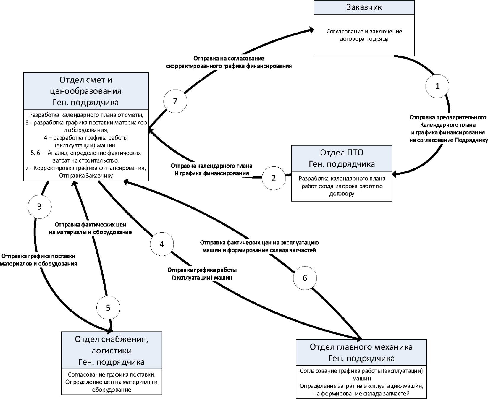 Календарный план работы (эксплуатации) машин передается в отдел главного механика. Отдел главного механика определяет затраты на эксплуатацию машин и на формирование склада запчастей и ГСМ и согласовывает сроки поставки.