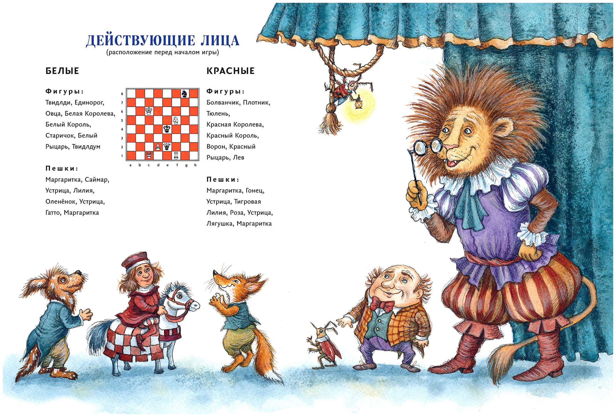 – Вот Красный Король и Красная Королева, – едва слышно проговорила Алиса, чтобы не спугнуть их. – А вот и Белый Король со своей Королевой сидит на краю лопатки. А вот две Ладьи гуляют под ручку… Хорошо, что они меня не слышат, да и, скорее всего, не видят: я для них вроде как невидимка.