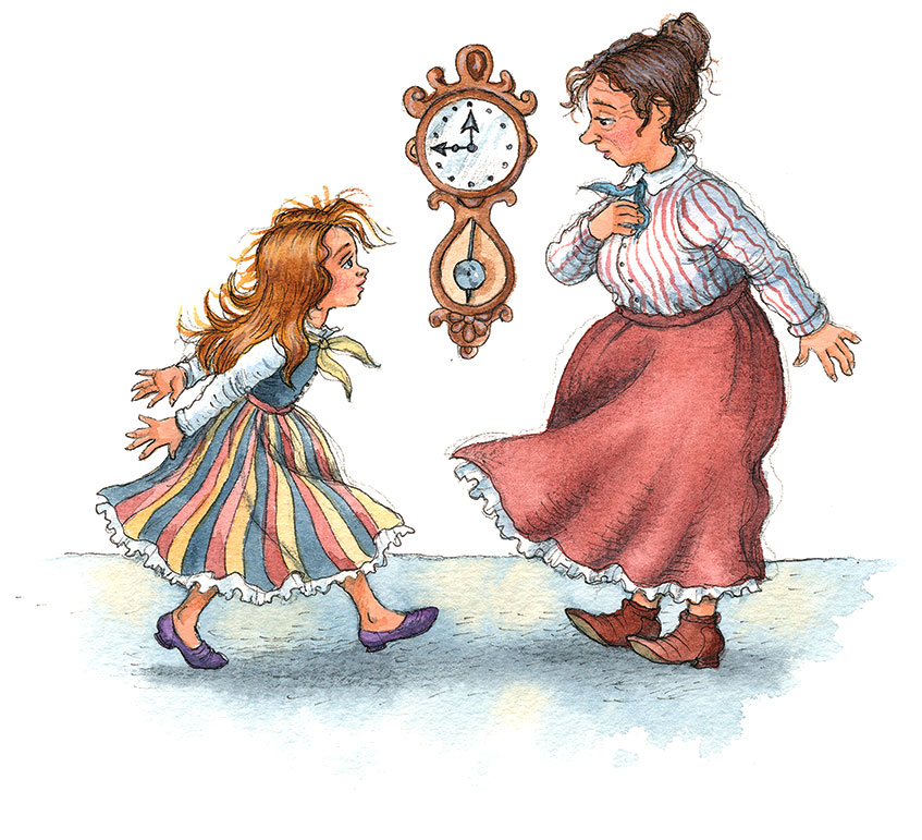 – Ну-с, теперь третье: стоило мне на минуту отвлечься, ты размотала весь клубок. Вот три проступка, за которые ты будешь наказана, и не далее как в следующую пятницу, то есть через неделю… Я вот подумала… а что, если бы папа и мама тоже собирали все мои проступки, например на конец года? Им бы, наверное, пришлось отправить меня в тюрьму в день расчёта. Или вот если бы в качестве наказания оставляли без обеда… Значит, в тот злосчастный день в конце года мне пришлось бы остаться сразу без, к примеру, пятидесяти обедов? Ну что же. Я бы не очень огорчилась. Лучше остаться без пятидесяти обедов, чем съесть их за один раз.