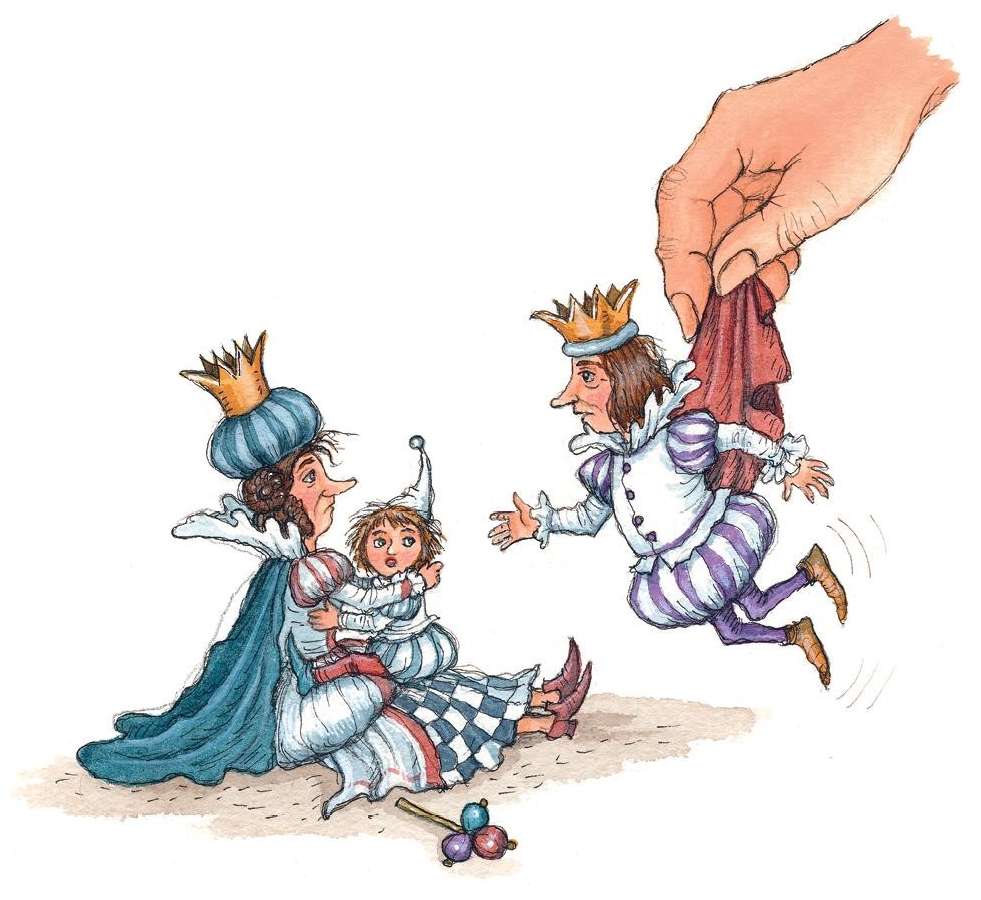 Бедный Король сидел озадаченный и смущённый, пытаясь справиться с взбесившимся карандашом, но куда там… В конце концов он сдался и вздохнул: