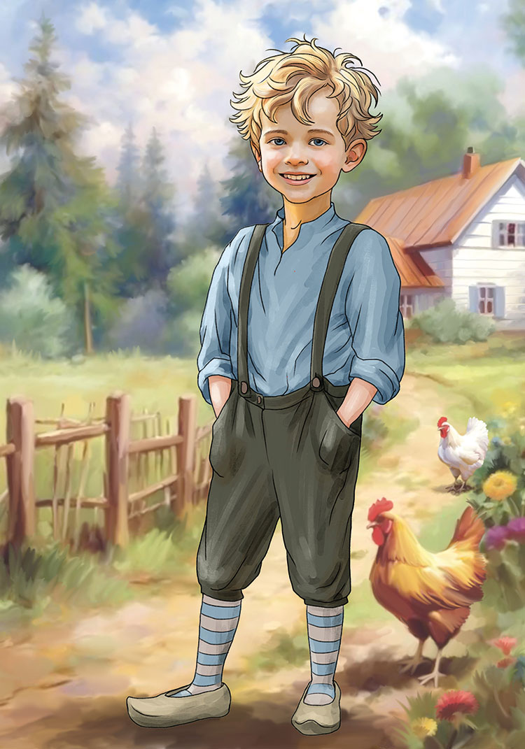 Он был маленького роста, такого же, как и сам Герка (не больше метра). Одет в чёрный сюртук с полами до колен, из-под него аккуратно выглядывал белый воротник, а на голове красовалась широкополая шляпа. Она была такой большой и смешной, что мальчик вообразил, как на ней пасутся куры с цыплятами. Эта мысль его увлекла и рассмешила.