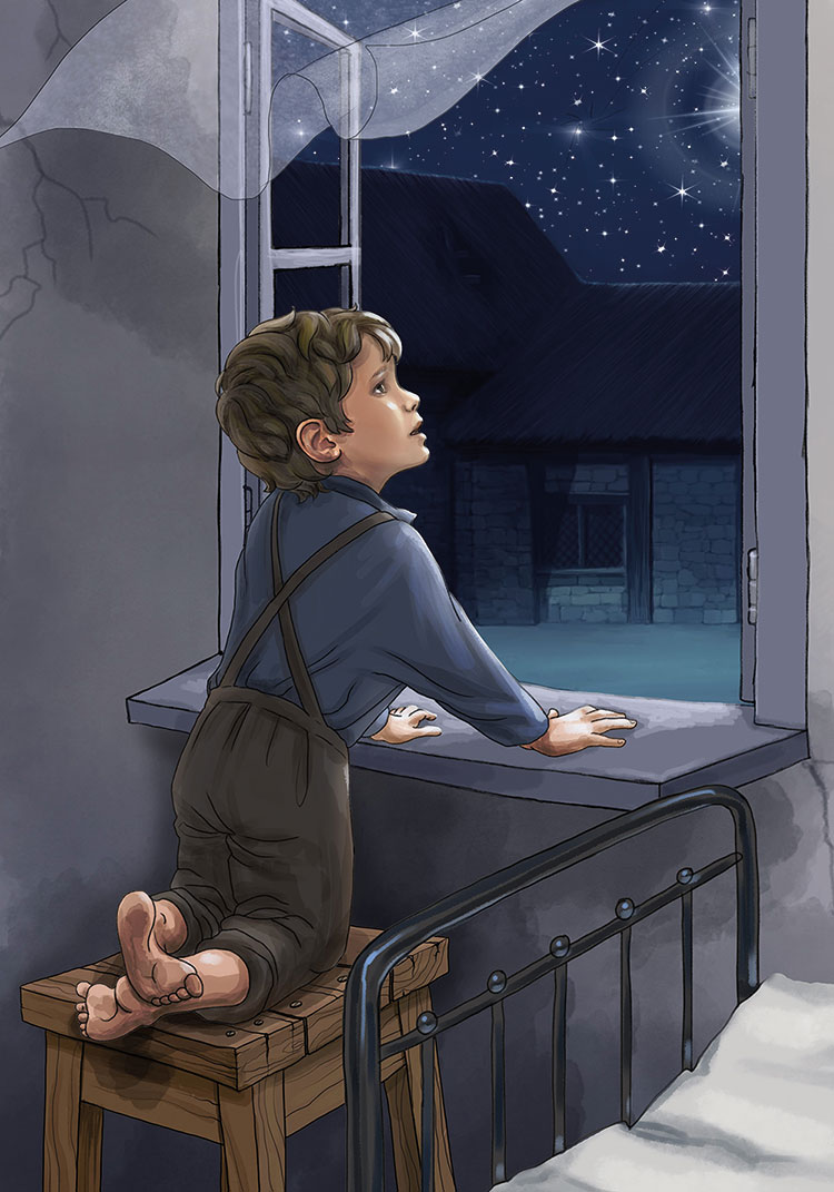 Всё глубже и глубже мальчик погружался в свои размышления и, наверное, так бы и уснул, как вдруг одна звезда соскользнула с неба и упала рядом с его домом. И в тот самый момент за окном что-то ойкнуло!..