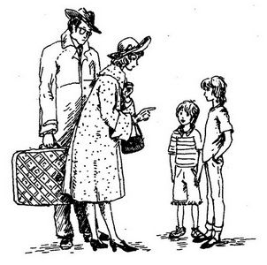 “I depend on you,” said Papa, when he and Mama sat down in the car. “Everything will be fine!” Kate assured him. “I won’t take my eyes off him.” This was said about her younger brother who was standing beside her. In answer the boy stuck his tongue out at his sister but in such a way that their parents would not notice.