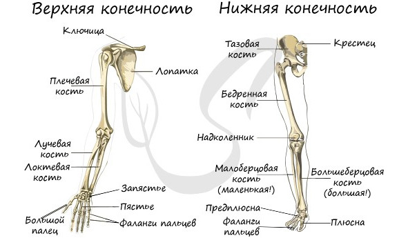 – Обозначаются различными группами костей: плечевая кость, локтевые кости, бедренная кость и т. д.