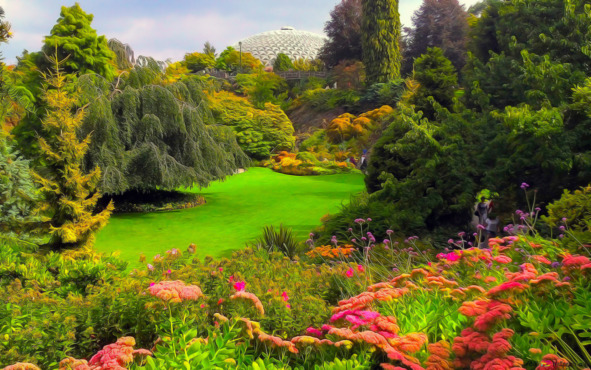 Яркое и приятное для глаза светило украшало небосвод, по коему мирно проходили небольшие тучи лишь очень редко как-то преграждая путь тёплым и даже порой горячим лучам. Ветерок дул и с нежностью обдувал листья высоких деревьев. Колыхались веточки высоких кустов, колебались на этом потоке в приятном танце на месте цветы самых различных видов. Меж них прорастала трава с чистейшим зелёным окрасом, пока на ней постепенно сползала капля росы, не принимая в себя ни единую пылинку, казалось их тут попросту нет. Меж садиков, где находились цветы, ограждённые высокими кустами, словно превращаясь в отдельные природные залы проходили дорожки из чудного мрамора иногда переходящий в блестящий с лёгкими шероховатостями магматический камень. Так образовывались небольшие площадки, где иногда можно было встретить фонтаны из самых лучших минералов, и где, поднимаясь на значительную высоту падала чистейшая вода, создавая ту завораживающую синеватую гладь с миллионами кружков, расходящиеся в стороны с поднимающимися каплями.