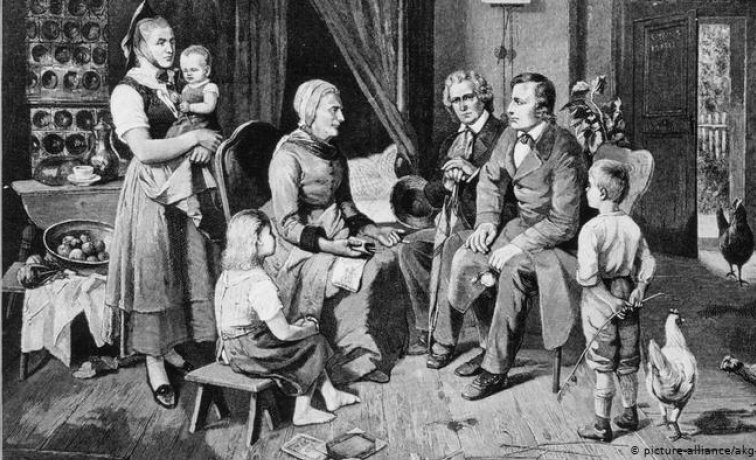 Пересказы народных преданий Доротеи стали одним из важнейших источников собрания Гриммов «Детские и семейные сказки». Гравюра XIX века