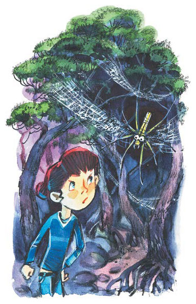 Даша несмело оглядела паутину и на самом верху увидела паука величиной с большой палец – он устало свесил лапки и качался на сетке.