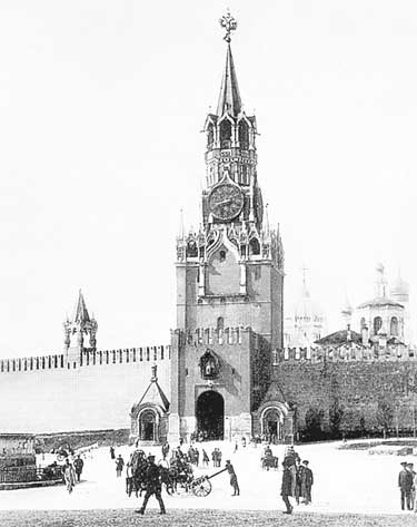Закладные доски на фасаде Спасской (тогда Фроловской) башни сообщали год ее строительства: 6999-й. Традиция главенства этой башни коренится в ожидании конца, когда особые ворота крепости должны равняться иерусалимским воротам Входа Господня.